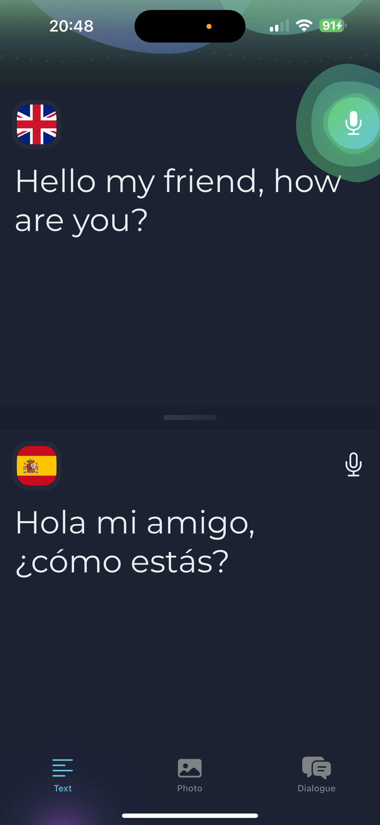 Seamlessly talk with another person — the app listens to both sides and translates in real time.